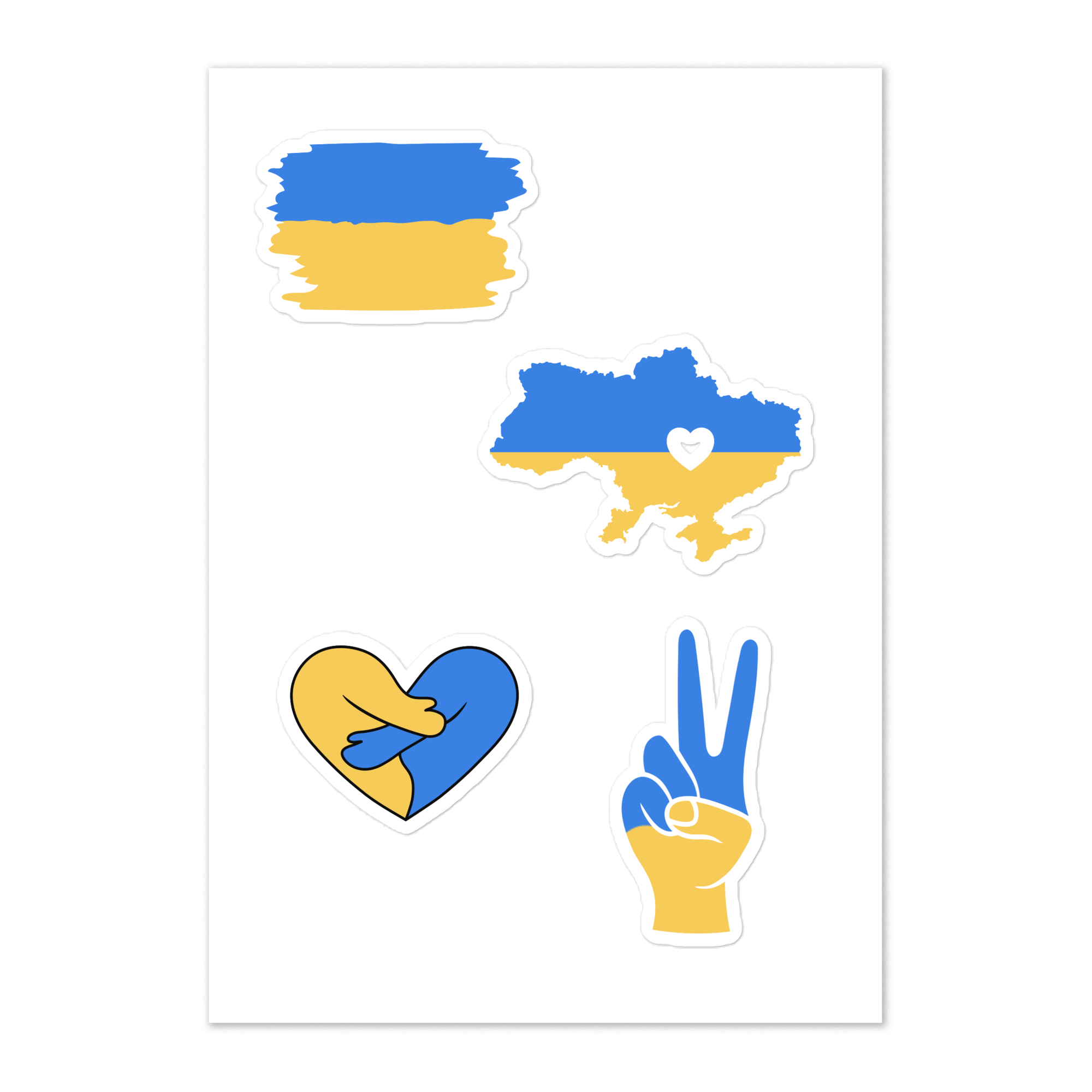Multiple stickers to show your support for Ukraine.